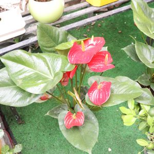 • Sắc hoa rực rỡ: Những lá bắc hình trái tim đỏ thắm, bóng mượt bao bọc lấy nhụy vàng, mang lại vẻ đẹp quý phái và bền bỉ.
