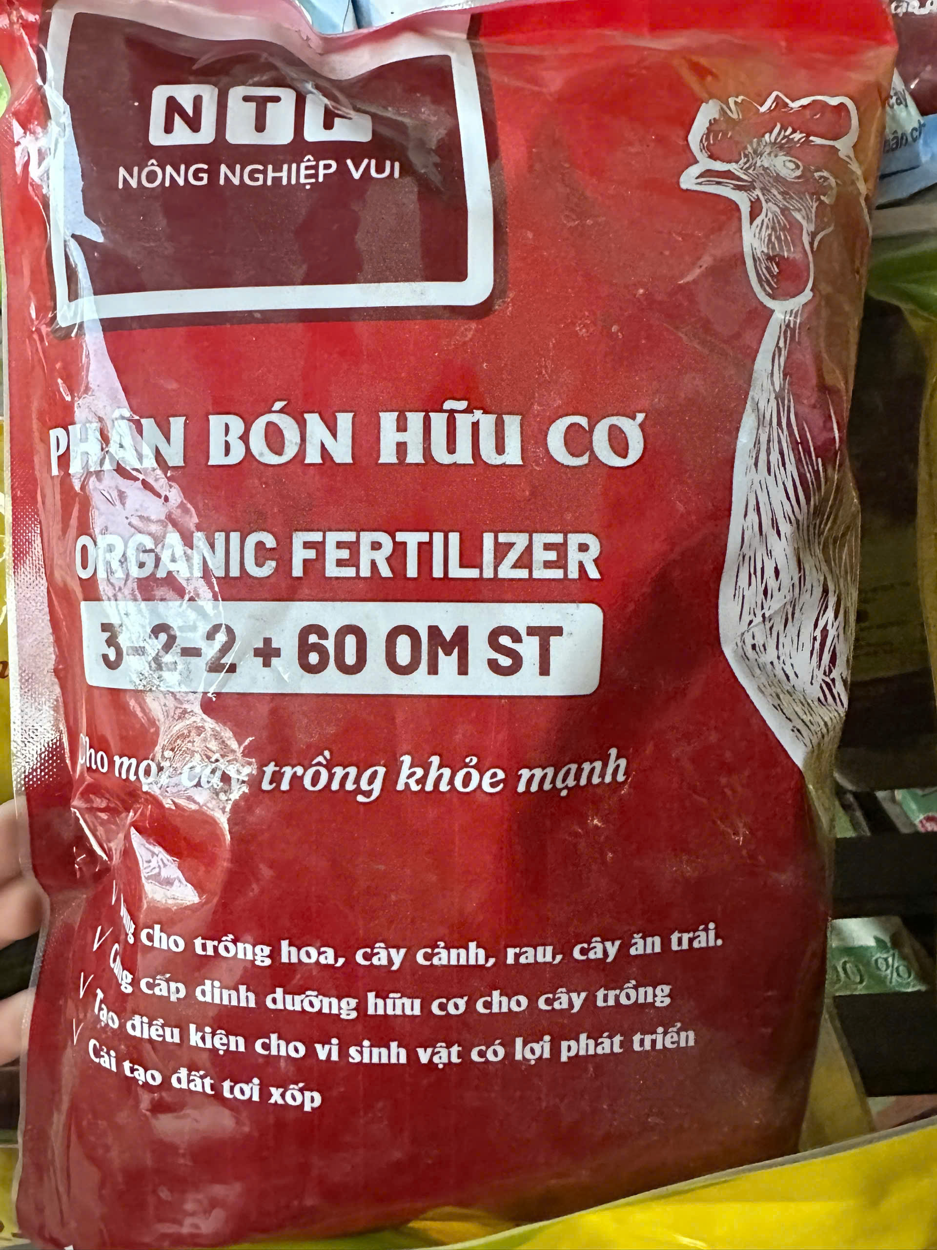 Phân gà hữu cơ ORGANIC FERTLIZER 3-2-2 + 60 OM ST được nhập khẩu trực tiếp từ Nhật Bản, sản xuất từ nguyên liệu hữu cơ tự nhiên. Sản phẩm này cung cấp đầy đủ dinh dưỡng cho cây trồng, cải tạo đất, nâng cao năng suất và bảo vệ môi trường, là lựa chọn lý tưởng cho người nông dân trồng hoa, rau, cây cảnh và cây ăn quả.